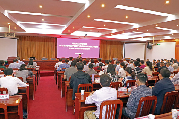辅导报告后,党政办公室主任王青、教务处处长刘永存分别围绕作主题交流发言。