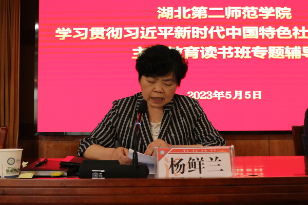 本网讯(学通社见习记者 刘珍珠)5月5日上午,学校在行政楼五号会议室举行第五次主题教育读书班专题辅导,全国人大常委会原委员、湖北省人大常委会原副主任、华中师范大学国家教育治理研究院院长周洪宇教授受邀作专题辅导报告,全体校领导出席,全体中层干部参加,校党委书记杨鲜兰教授主持会议。