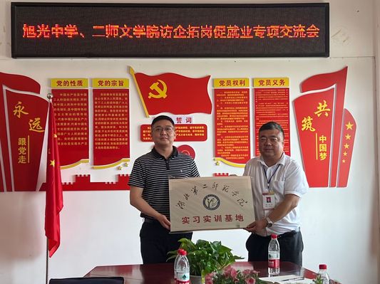 本网讯(通讯员 李晓峰)5月18日,校党委常委、副校长陈勇带领文学院班子成员、教师代表赴鄂州市旭光中学开展访企拓岗促就业专项交流活动,并举行了实习实训基地挂牌仪式。