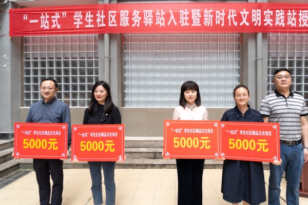 本网讯(通讯员 金琰 学通社见习记者 王智莉)5月25日上午,我校在学生宿舍中区五栋一楼(新传书院)举办“一站式”学生社区服务驿站入驻暨新时代文明实践站授牌仪式活动。校长郑军,党委常委、副校长陈勇,党委常委、宣传部部长周忠出席,活动由黄颂主持。