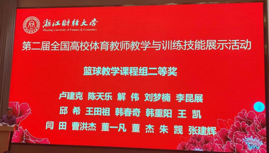 本网讯 (通讯员 姚威)5月25月至28日,第二届全国高校体育教师教学与训练技能大赛在浙江财经大学举行,我校体育学院邱希副教授荣获二等奖。