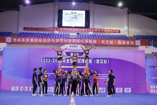 本网讯(通讯员 向琴英)5月27日, 2022—2023年全国啦啦操联赛(武汉站)在武汉东湖学院体育馆举行,我校啦啦操队在比赛中获三项冠军。