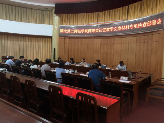 本网讯(通讯员 简红莲)6月1日下午,学校在行政楼一号会议室召开师范类专业认证教学文案材料专项检查部署会。全体校级督导参加会议,教学质量监测与评估中心主任邓樱花主持会议。