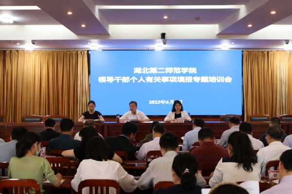 本网讯(通讯员 柯常春)6月6日,我校召开2023年领导干部个人有关事项填报工作专题培训会。全校中层干部(教学学院院长、副院长除外)参加培训,校党委副书记胡兴主持会议。
