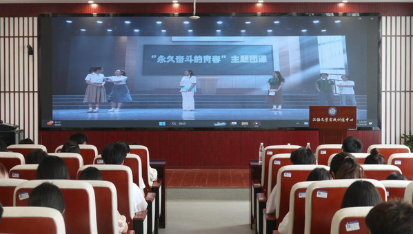与会人员共同观看了“永久奋斗的青春”主题话剧团课。团课通过短剧演绎的形式,紧扣“孔乙己的长衫”“小镇做题家”等社会热点,并以焦裕禄、袁隆平等榜样的故事,回顾了共青团在党的领导下团结带领广大青年在跨世纪进程中锐意创新、勇担使命的奋斗历程。