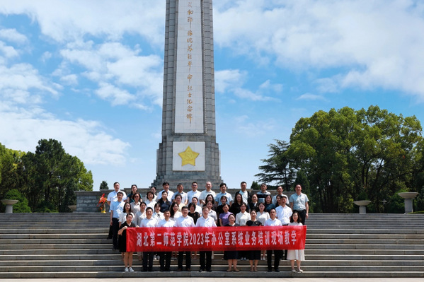 本网讯(通讯员 陈群)为践行习近平总书记关于办公室工作的“五个坚持”的要求,弘扬爱岗敬业、无私奉献、忠诚担当的革命传统精神,6月9日,学校在红安红色教育基地举行2023年办公室系统业务培训现场教学暨研讨交流会。校党委副书记胡兴出席并讲话,相关职能部门负责人、各二级单位党政办公室(综合办公室)主管及工作人员参加教学活动,活动由党政办公室主任王青主持。