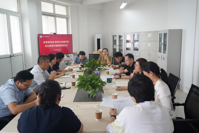 会上,宣传部和新闻与传播学院双方就部院共建方案背景、具体内容、实施方式充分表达了意见。新闻中心主任、宣传部副部长谢莎从“资源共享、平台共用、课题共研、项目共建、人才共育”五个方面提出了部院共建愿景;新闻与传播学院党总支书记徐晓分析梳理了部院共建“传统、资源、项目、发展”四大优势;新闻与传播学院院长陈瑛提出要“有利于学校向外宣传,有利于双向在省级平台产出高质量成果,有利于为学生就业、考公、考研提供便利”的意见和建议。