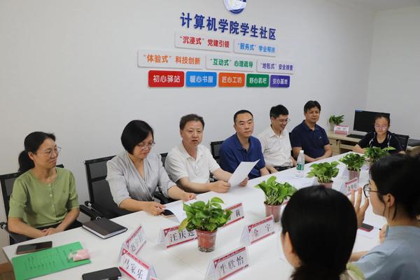 随后,胡兴与学生骨干代表在学院学生社区服务驿站开展座谈会。座谈会上,计算机学院党委书记陈宇勉励学生要注重提升自己,追求卓越,砥砺前行;院长杨莉鼓励学生要成为自信、勇敢、坚强的人。