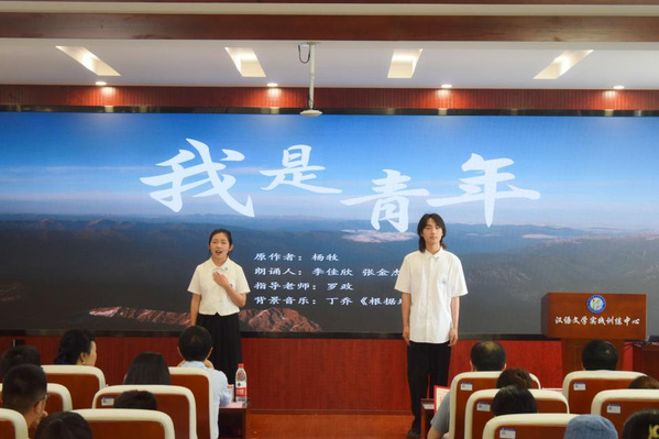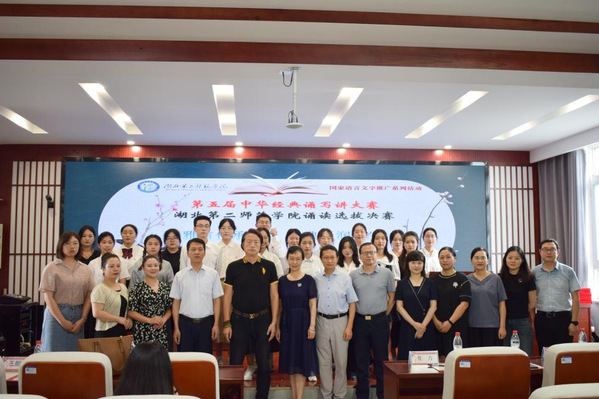 本网讯(通讯员 李晓峰) 6月20日下午,学校在文学剧场隆重举行国家语言文字组推广系列活动——第五届中华经典诵写讲大赛校级诵读选拔赛。“为你诵读”杯现代诵读艺术盛典总展演湖北巡展区负责人段菁晶、武汉皓月文化传播有限公司李晨作为特邀请嘉宾出席,我校党委常委、副校长夏力为大赛致开幕辞。