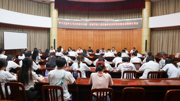 校团委书记刘锐领学了习近平总书记同团中央新一届领导班子成员集体谈话时的重要讲话精神,并从学校共青团干部要做政治上的明白人、做业务上的内涵人、做青年学生的贴心人等三个方面分享了学习体会。