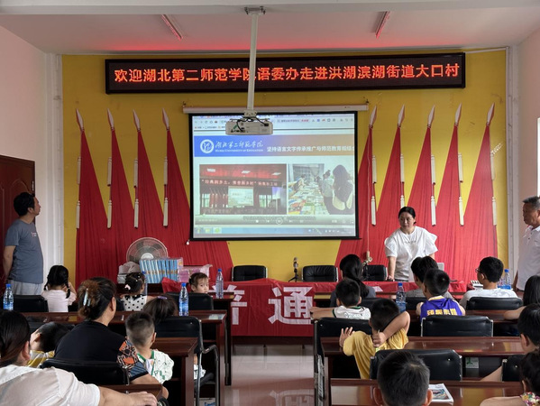 本网讯(通讯员 何振阳)为加大国家通用语言文字推广力度,铸牢中华民族共同体意识,助力乡村振兴战略,7月24日至26日,教务处副处长邓芳率语言文字工作组深入洪湖市大口村开展以“普通话乡村行”为主题的推广活动。