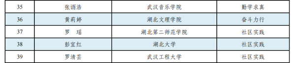本网讯(通讯员 张锐 陈颖旭) 近日,2022年度“中国大学生自强之星”奖学金评选活动结果揭晓。经学校推荐、省级初评、全国评审等环节,我校教育科学学院2020级学前教育2班罗瑶获“中国大学生自强之星”荣誉称号,计算机学院学院2019级电子商务1班毛东立获“湖北省大学生自强之星”荣誉称号。