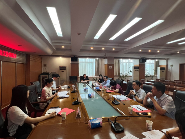 本网讯(通讯员 李晓峰)8月21日下午,湖北省第26届全国推普周开幕式筹备工作推进会在我校召开。省语委办主任戴明一行莅临现场指导,我校党委书记杨鲜兰、校长郑军代表学校汇报了开幕式工作筹备落实进度,党政办公室、教务处、文学院、艺术学院等相关负责人参加会议。