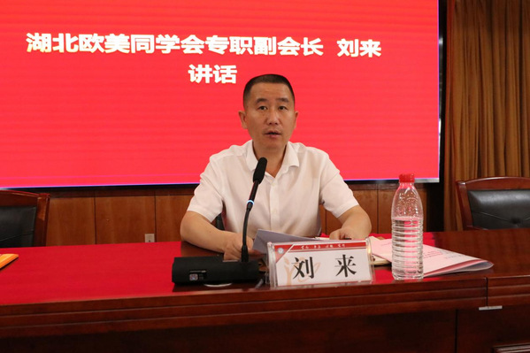 刘来代表湖北欧美同学会对我校欧美同学会的成立表示祝贺,就做好我校欧美同学会工作提出三点建议,一是要强化思想政治引领,广泛凝聚共识;二是要弘扬留学报国传统,发挥优势作用;三是不断加强自身建设,建设温馨的家园。