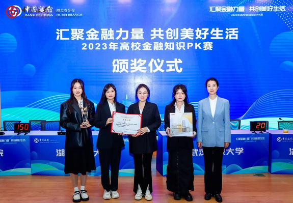 本网讯(通讯员杨紫旋)10月9日下午,由团湖北省委、中国银行湖北省分行主办的“汇聚金融力量,共创美好生活”2023年高校金融知识PK赛在武汉理工大学举行。我校参赛队获一等奖,团省委副书记陈立为其颁奖。