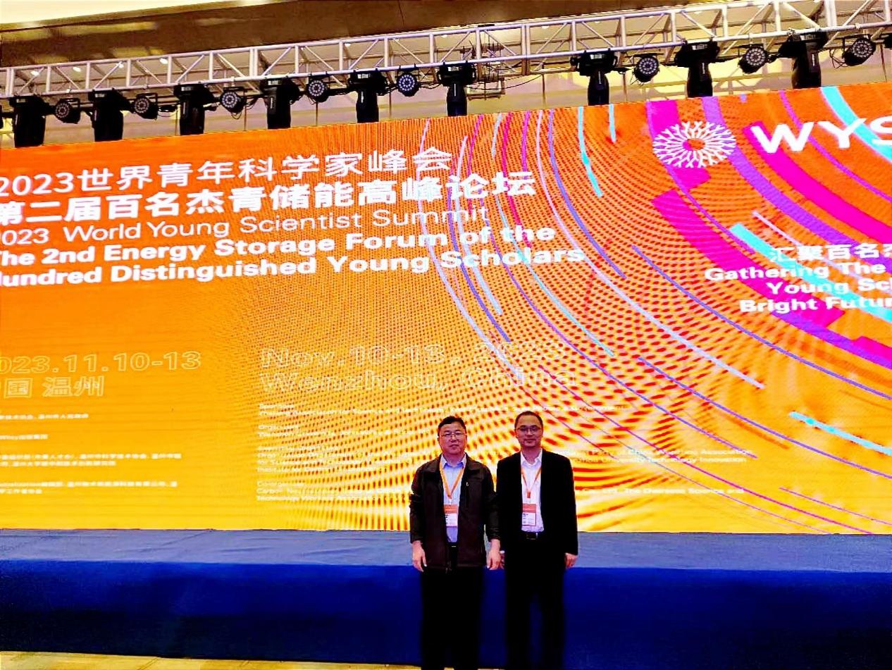 本网讯(通讯员 陶军晖)11月10-13日,由中国科学技术协会、浙江省人民政府领衔指导,温州市人民政府、Wiley出版集团共同举办的2023世界青年科学家峰会暨第二届百名杰青储能高峰论坛在浙江省温州市温州大学举办。大会紧紧围绕“汇聚百名杰青,共聚储能辉煌”主题,聚焦青年性、学术性、国际性、汇聚全球科创资源,吸引来自全球4位诺奖得主、36位海内外院士等近800名专家和青年科学家参会,共商储能前沿技术与产业发展发展,深层次展示我国在储能前沿技术与产业发展的最新进展与成果。我校物理与机电工程学院副院长李杰、青年教师陶军晖教授参加了本次会议并作技术交流。