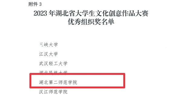 据了解,2023年湖北省大学生文化创意作品大赛于5月30日-10月24日举行,参赛作品经过网上申报,学校推荐,初赛专家网评,复赛实物评审、网络投票和现场路演等环节,评出大赛结果。全省近150所高校参加此次比赛,仅有10所高校获评“优秀组织奖”,我校是其中之一。(新闻中心编辑 程丽鹃)