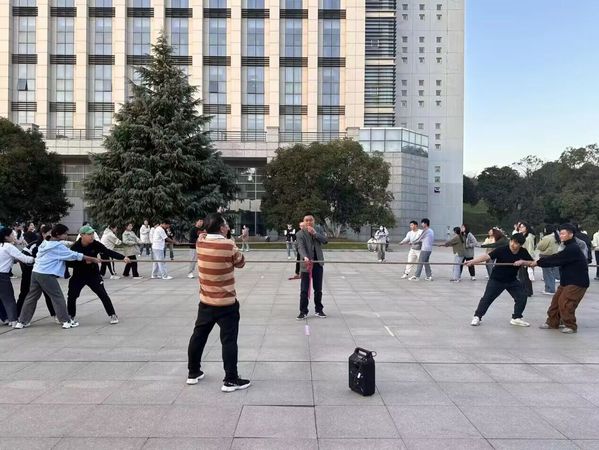 本网讯(通讯员 杨俊杰)近日,文学院在图书馆前举办第十二届“樱雨星空”学术文化节暨趣味拔河比赛。校党委常委、副校长陈勇参加并担任开赛嘉宾。