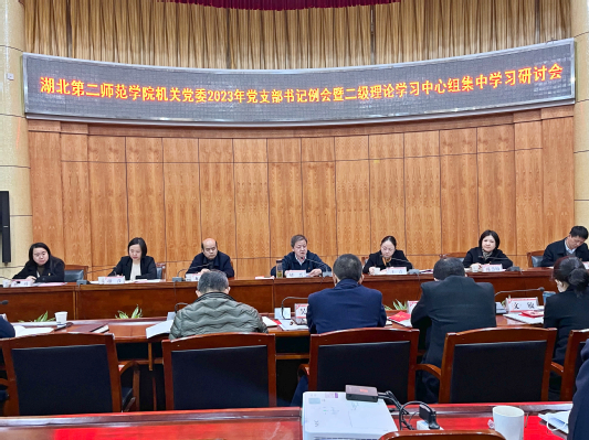 本网讯(学通社见习记者 林楚婧)为营造以学铸魂、以学增智、以学正风、以学促干的学习研讨氛围,机关党委于12月8日上午在行政楼一号会议室召开2023年党支部书记例会暨二级理论学习中心组集中学习研讨会。党委副书记胡兴出席会议,机关党委书记王青主持。