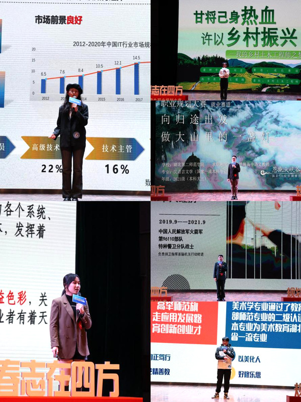 本次比赛分成长赛道和就业赛道两个部分。珍岛信息技术(上海)股份有限公司校园招聘经理谭静、湖北京邦达供应链科技有限公司华中校企合作负责人陈骏飞、武汉梦想卓创咨询有限公司总经理高泽金、金山软件股份有限公司招聘经理徐霞、武汉育才高级中学校长程臻,中乾立源工程咨询有限公司董事长、总经理巫世峰,东莞市青禾育成教育投资有限公司总经理陆彬担任比赛评委。