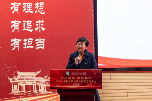 杨鲜兰给全体师生上“新年思政第一课”,她充分肯定了各教学学院学风建设宣传月活动内容充实、重点突出,工作亮点多、创新多,为学生全面成长蓄势赋能,赞扬了一年来我校学生在各类竞赛、评比活动中取得的优异成绩。杨鲜兰就进一步做好学生工作提出四点希望:一是凝聚思想共识,坚守初心使命,放眼于“高”,以更高的站位看待学生工作;二是强化组织建设,夯实育人根基,立足于“强”,以坚强的队伍保障学生工作;三是优化体制机制,形成强大合力,聚力于“融”,以融合的理念谋划学生工作;四是聚焦重点难点,坚持以生为本,着手于“创”,以创新的思维抓好学生工作。