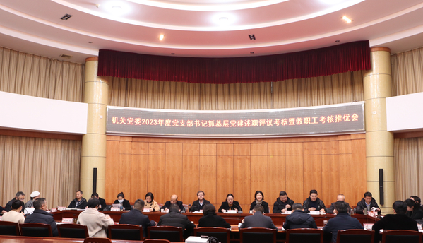 本网讯(通讯员 高慧)1月13日,机关党委在行政楼一号会议室举行2023年度党支部书记抓基层党建述职评议考核暨教职工考核推优会。校党委副书记胡兴出席会议,会议由机关党委书记王青主持。