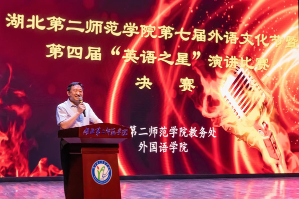 本网讯(通讯员 孟楚毓)5月23日下午,由教务处主办、外国语学院大学英语部承办的第七届外语文化节暨第四届“英语之星”演讲比赛决赛在大礼堂举行,校党委常委、副校长田恒平出席活动并致辞,学生工作部、团委、教务处、学科建设办公室、国际交流与合作处、新闻与传播学院相关负责人参加活动。