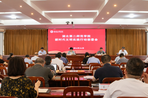 本网讯 (学通社见习记者 王诗婷)6月26日上午,学校在行政楼五号会议室召开新时代文明实践行动部署会。全体在校校领导出席,全体中层正职、校园文化建设特聘专家、学生代表参加会议。党委常委、宣传部部长周忠主持会议。