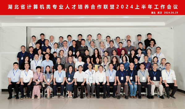 本网讯(通讯员 郑国媛)6月29日上午,湖北省计算机类专业人才培养合作联盟2024上半年工作会议在我校实验教学中心S4210举行。我校计算机学院作为联盟轮值单位承办此次会议,校长郑军出席会议并讲话。联盟成员单位、特邀单位,以及协办单位的领导、专家、教师代表和企业负责人等100余人出席了会议。开幕式由计算机学院院长杨莉主持。
