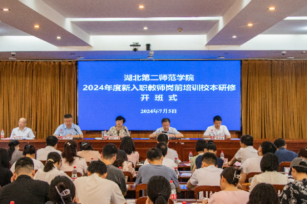 本网讯(通讯员 覃姗姗)7月5日上午,2024年度新教师入职仪式暨岗前培训校本研修开班仪式在学校行政楼五号会议室举行,校党委书记杨鲜兰,党委副书记胡兴出席。各教学学院主要负责人、相关职能部门负责人以及73名参训教师参加开班仪式。