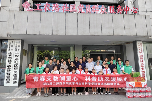 校地双方签订《大学生暑期“三下乡”社会实践活动基地共建协议》,学校为小渡船街道工农路社区社会实践基地授牌,志愿者和小朋友表演“健身气功八段锦”、小合唱“少年中国说”等节目,与会领导和老师为志愿者们发放慰问品。
