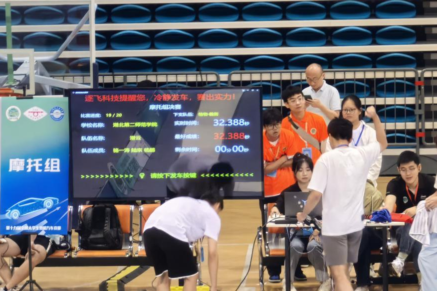 在8月21日进行的总决赛中,我校摩托车队参赛队员们在比分落后的情况下,顶住压力,顽强拼搏,奋力追赶,最终以0.204秒的优势获得了全国总冠军。
