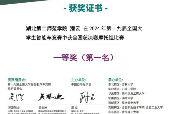 本网讯(通讯员 王怀兴 陈磊 )近日,第十九届全国大学生智能汽车竞赛全国总决赛落下帷幕,经过角逐,我校物理与机电工程学院选派的参赛队获全国总冠军1项,全国二等奖1项。在全国总决赛的10个本科组别的竞赛中,我校是湖北省参赛高校中获得全国总冠军的唯一高校。