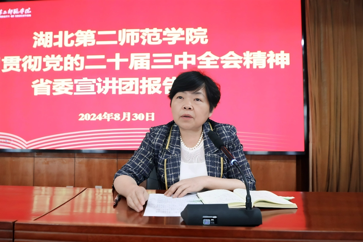 杨鲜兰在总结讲话中指出,此次报告高屋建瓴,视野宏大,内涵丰富,深入浅出,具有很强的思想性、针对性和指导性。她强调,学习贯彻党的二十届三中全会精神是当前和今后一个时期的重要政治任务,全校上下要切实把思想和行动统一到党中央重大决策部署、省委工作要求上来,把学习贯彻全会精神与学习领会习近平总书记关于全面深化改革的一系列新思想、新观点、新论断结合起来,与省委二十届七次全会精神结合起来,与扎实推进学校“十四五”发展规划和“达标申硕”发展目标结合起来,深度融入国家发展战略,以实际行动把学习成果转化为履职尽责、干事创业的实际成效,推动党的二十届三中全会精神在学校落地生根,以一域之光为中国式现代化湖北实践添光彩,为湖北经济社会发展和教育发展贡献智慧和力量。