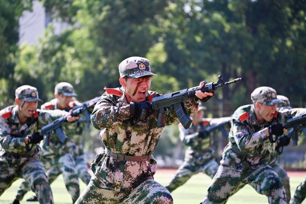 在军事技能成果汇报表演中,新生们依次展示了内务比赛、分列式方阵、匕首操方阵、战术演练等一系列精彩的表演,彰显了2024级新生积极向上的精神面貌。