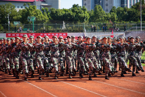 伴随着雄壮的国歌声,开学典礼正式拉开序幕。校党委书记杨鲜兰下达军训汇报表演开始指令,四千余名参训学生着装统一,英姿飒爽,以精神饱满的风貌,迈着整齐划一的步伐,喊着激情澎湃的口号,依次通过主席台,接受检阅。