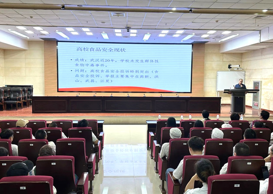 本网讯(通讯员 方韬)为提高我校餐饮从业人员食品安全理论水平和业务技能,进一步提升校园食品安全保障能力,10月16日,后勤保障部联合武汉市市场监督管理局开展了2024年秋季校园食品安全培训会,邀请了武汉市市场监督管理局餐饮服务监督管理处主任罗勇作培训。会议由后勤保障部党总支书记刘晖主持。