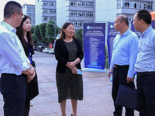 本网讯(学通社记者 吴风雪 见习记者 韦槿怡)10月18日上午,学校在图书馆广场举办“湖北百校联动”高校毕业生供需见面会暨三码必中一码秋季专场招聘会,校党委常委、副校长张红梅现场指导工作。