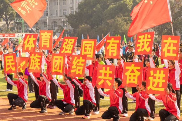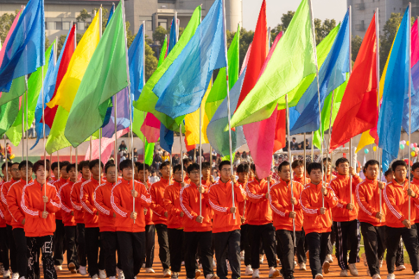 伴随着昂扬的《运动员进行曲》,校国旗队、彩旗队、鲜花队、裁判员代表队、教职工代表队和13个学院代表队组成的方阵依次入场。各学院特色表演方阵各显身手,精彩纷呈,展现了我校师生蓬勃向上,意气风发、风华正茂的精神面貌。