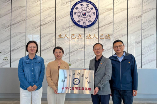 在盛隆电气“红色空间”,宣传部党支部和新闻与传播学院各党支部开展一场特别的联合主题党日。在盛隆大厦立达厅,校企双方举行了学校“新时代文明实践基地”授牌仪式。曹蕊邀请同学们参加盛隆集团“百校千人计划”千里班,为优秀学子优先提供实习就业机会。