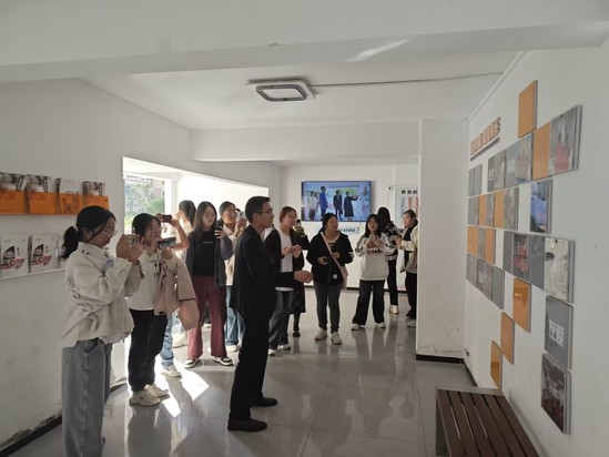 黄龙山社区负责人闫正祥、辛善霸热情接待了师生一行。在负责人的指引下,师生们参观了社区的“蚓窍诗社”,欣赏了特色吉祥物、《百龙图》等社区品牌,切身感受了社区的特色文化与创新发展。