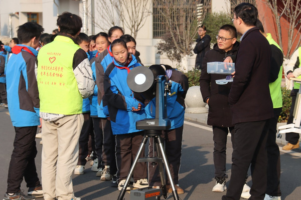 活动中,我校物理与机电工程学院万振武老师和物理学“优师计划”班学生引导小朋友们近距离接触智能机器人,让他们对机器人技术在日常中的应用有了更直观的认识,感受了科技的魅力。在学院“优师计划”学生的引导下,小朋友们学会了天文望远镜的正确使用方法及观测时应遵守的安全准则,亲身体验了使用专业天文设备观测太阳的过程,近距离观察到了太阳的壮丽景象。
