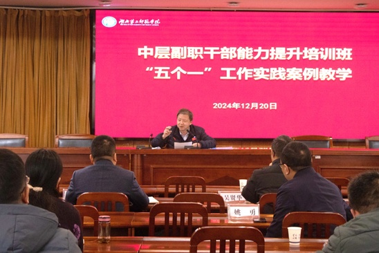 本网讯(学通社记者 李云昕)12月13日、20日,我校先后在行政楼五号会议室开展两个场次中层副职干部能力提升培训班“五个一”工作实践案例教学。全体中层副职参加,校党委副书记胡兴主持会议。