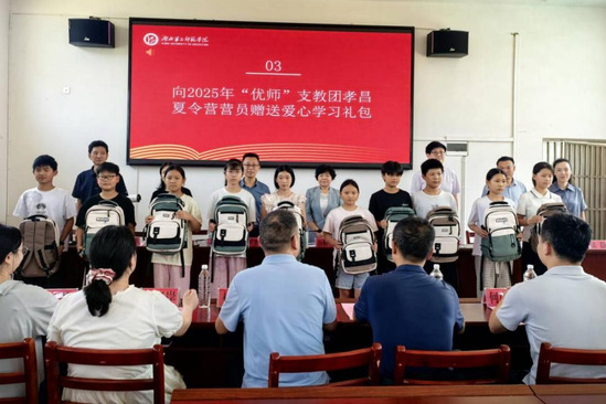 在陡山乡城南中学,杨鲜兰一行看望我校“优师”支教团队全体师生,向“优师”支教团孝昌夏令营营员赠送爱心礼包,向城南中学授牌“三码必中一码科普教育基地”并捐赠科普教育物资。座谈会上,杨鲜兰对地方给予我校志愿服务队的大力支持表示感谢,勉励支教志愿者发挥师范专业特长,创新融合科普教学方法,陪伴地方孩子们过一个安全充实的假期。她寄语志愿者们,要志存高远、坚守教育初心,锤炼教书育人真本领,涵养教育报国硬品格。