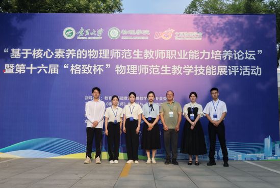 本网讯(通讯员 胡森)7月27日,基于核心素养的物理师范生教师职业能力培养论坛暨第十六届“格致杯”物理师范生教学技能展评活动在宁夏大学落幕。我校学子获一等奖1项、二等奖4项、三等奖2项,学校获“优秀组织奖”。
