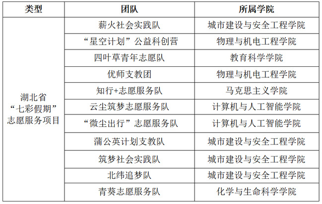 本网讯(通讯员 池家飞 金鑫)近日,共青团湖北省委公布2025年湖北省“七彩假期”社会实践通报表扬名单,我校11支团队成功入选,获表扬团队数量位居全省高校首位,学校同步收到团省委感谢信。