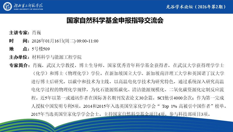 【光谷学术论坛预告】国家自然科学基金申报指导交流会