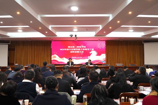 本网讯(通讯员 陈亚琼)1月19日下午,学校在行政楼五号会议室召开2025年度中层领导班子和领导干部述职述廉大会,全体在校校领导、中层领导干部和各教学学院教师代表参加会议。校长郑军主持会议。