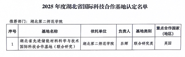 本网讯(通讯员 张宇)近日从省科技厅获悉,我校申报的“先进储能材料科学与技术国际科技合作基地”正式获批立项。该国际科研基地将与英国诺丁汉大学合作,共同开展储能材料的科学研究和成果转化。